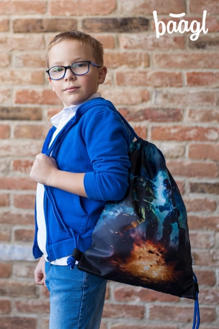 Stylový sáček s akčním robotickým motivem zaujme děti i teenagery. Díky odolnému, snadno omyvatelnému materiálu vydrží každodenní používání do školy, kroužků i na sport. Praktické tkanice umožňují pohodlné nošení na zádech jako batůžek.