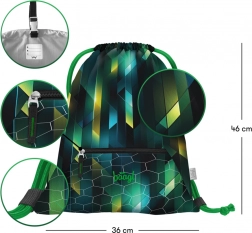 Díky integrované karabince sáček rychle připevníte k aktovce nebo batohu. Spodní kapsa na zip bezpečně pojme klíče, peníze či čip, zatímco pevné tkanice umožní pohodlné stažení a nošení na zádech jako malý batoh.