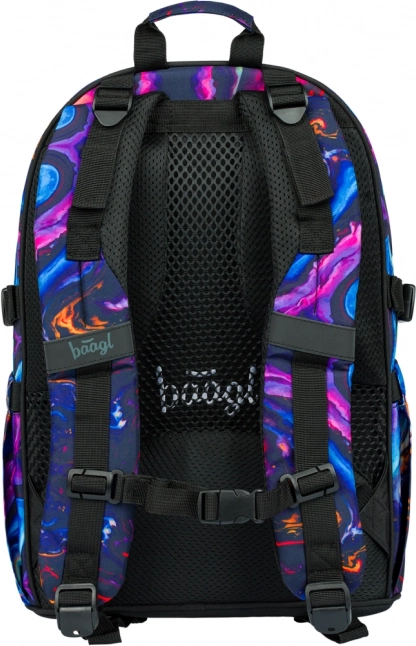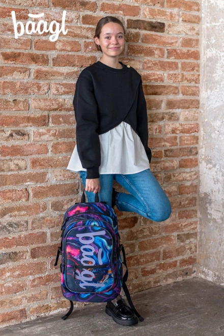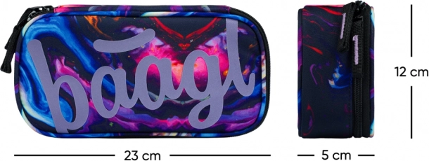 Školní set Baagl Core Marble spojuje funkčnost a výrazní mramorový design. Ergonomický batoh s třemi komorami pojme vše od učebnic po 15" notebook, penál s výklopnou přepážkou udrží pořádek ve školních potřebách a odolný vak se stahováním je připraven na obuv i kroužky.