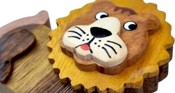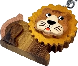 Tato ručně vyráběná dřevěná klíčenka ve tvaru lva se stane ozdobou vašich klíčů, kabelek či batohů. Výrobek je vytvořen až z pěti druhů přírodního dřeva: žlutý chlebovník různolistý, světlehnědý tamarind manilský, tmavěhnědá kasie obecná, růžová aniba a bílá gmelina arborea. Dřevo není barveno, je ponecháno v přírodní podobě, a celkový design je dotvořen ručním malováním.