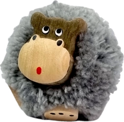 Tělo hrocha tvoří měkký bavlněný pompon v neutrální šedé, který láká k pohlazení a dodává dekoraci hravost.