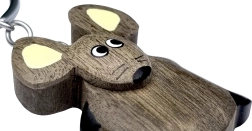 Stylová dřevěná klíčenka ve tvaru myši zaujme svým přírodním vzhledem a poctivým ručním zpracováním. Je to odolný a funkční přívěsek na klíče, kabelku či batoh, který díky kovovému kroužku spolehlivě drží. Kombinace až pěti druhů dřeva s přirozenou barevností dělá z každého kusu originální doplněk a milý univerzální dárek pro milovníky přírody a zvířat.