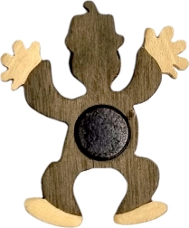 Tato dekorativní magnetka ve tvaru opice je vyrobena z pečlivě vybraných přírodních dřev – od světlých po tmavé tóny – a jemně ručně domalována pro živý výraz. Dřevo není barveno, barevnost je přirozená, díky čemuž magnetka působí autenticky a každá je jedinečná.