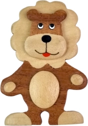 Tato elegantní dřevěná magnetka lva vyniká precizním řemeslným zpracováním a přírodní estetikou. Každý kus je jedinečný díky kombinaci až pěti druhů dřeva s vlastními odstíny – výsledkem je harmonická, přirozeně barevná dekorace bez plošného barvení.