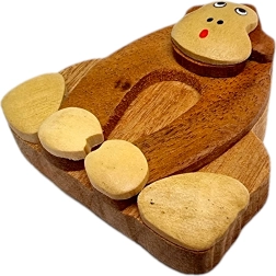 Každá opička je pečlivě vyřezána a domalována ručně. Přírodní dřevo není barveno, vyniká tak jeho autentická struktura i odstíny.
