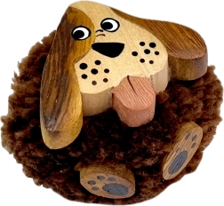 Tato originální magnetka v psím motivu spojuje přírodní krásu dřeva a hebkou texturu textilního pomponu. Každý kus je ručně skládaný až z pěti druhů dřeva s přirozeně různými odstíny a ručně domalovaný pro jedinečný výraz.