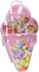 Objevte zábavný set korálků ve tvaru zmrzliny, který obsahuje různé velikosti a barvy korálků spolu s provázkem pro snadné navlékání.