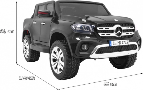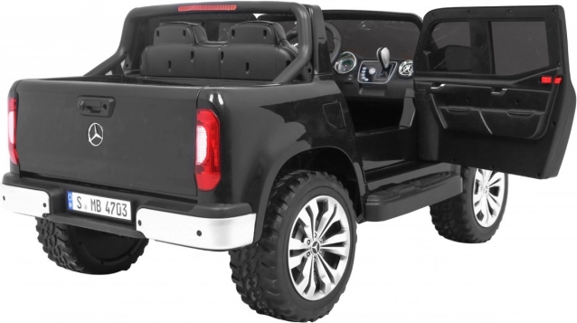Robustní dětské elektrické autíčko MERCEDES-BENZ X-Class s náhonem 4x4, výkonnými motory 4 × 45 W, velkými koly z EVA pěny a dálkovým ovladačem 2,4 GHz pro bezpečnou jízdu. Nabízí plynulý rozjezd, LED osvětlení, MP4 panel a komfortní sedadlo z eko kůže. Vhodné až do 50 kg.