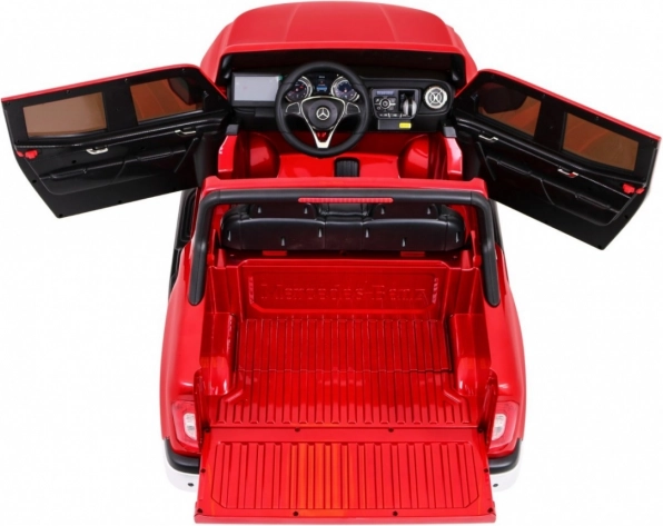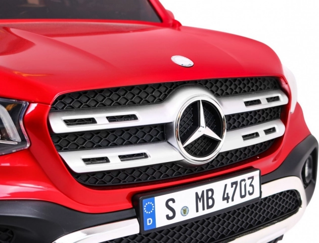 Tento prémiový dětský pickup MERCEDES-BENZ X-Class zaujme lakovaným povrchem a detailním zpracováním. Silná sestava 4× 45 W motorů s možností přepnutí pohonu 2WD/4WD zvládne jízdu po trávě i zpevněných cestách. Měkká EVA kola o průměru 30 cm zajišťují tichý a komfortní provoz, zadní odpružení navíc tlumí nerovnosti.