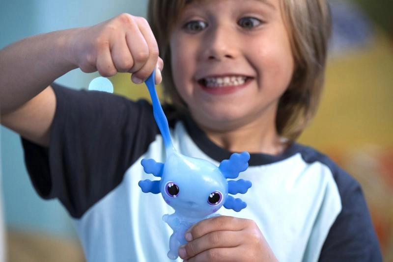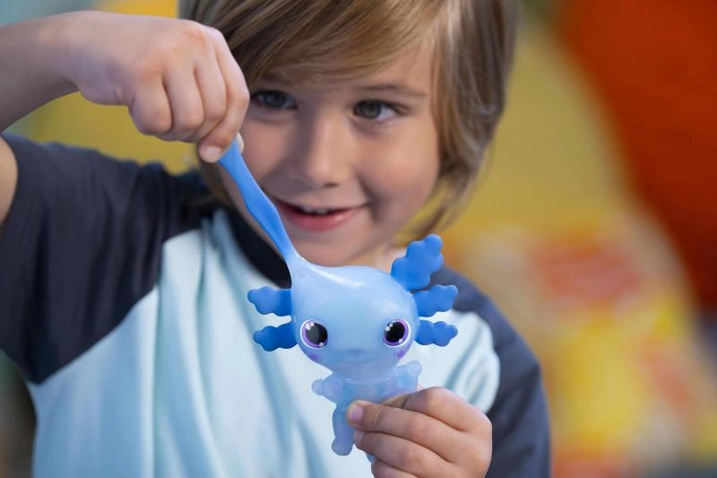 Axolotl je protahovací, mačkací a příjemně pružný, takže přináší spoustu způsobů hraní – od uklidňujícího mačkání až po interaktivní vodní hrátky. Odolné provedení a bezpečný design z něj dělají ideální dárek pro děti, které milují barevné, svítící a dotykové hračky.