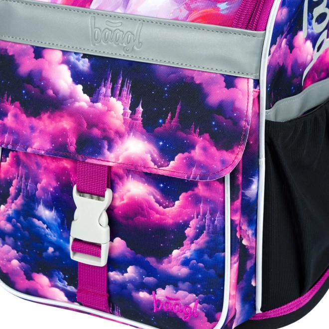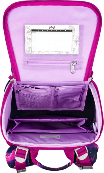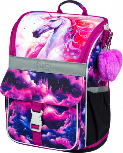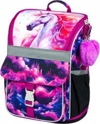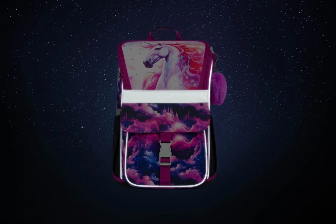 Stylový motiv Jednorožec Království v růžovo-fialových tónech děti nadchne. Reflexní prvky zvyšují bezpečnost a pevná konstrukce drží tvar po celý školní den.