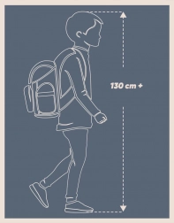 Ergonomicky tvarovaná záda a plně nastavitelné ramenní, prsní i boční kompresní popruhy zajišťují maximální pohodlí a správné rozložení zátěže po celý školní den.
