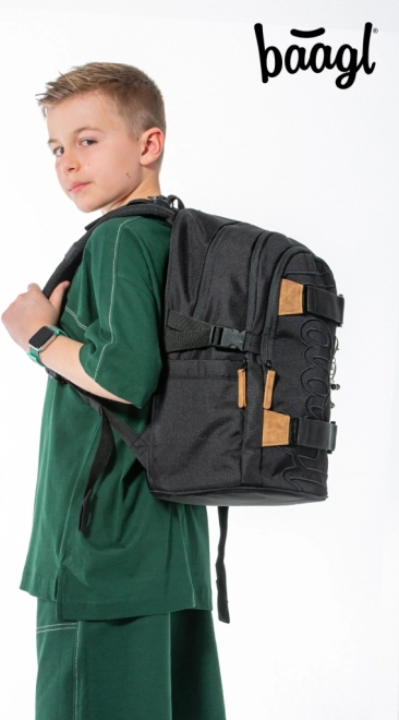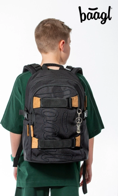 BAAGL Skate Darkness je promyšlený školní batoh pro každodenní nošení do školy, na kroužky i městské výlety. Díky třem samostatným komorám s vnitřním organizérem a polstrované kapse bezpečně uložíte učebnice, sešity i 15" notebook nebo tablet. Boční pevné kapsy jsou ideální na láhev s pitím, přední popruhy snadno udrží skateboard.