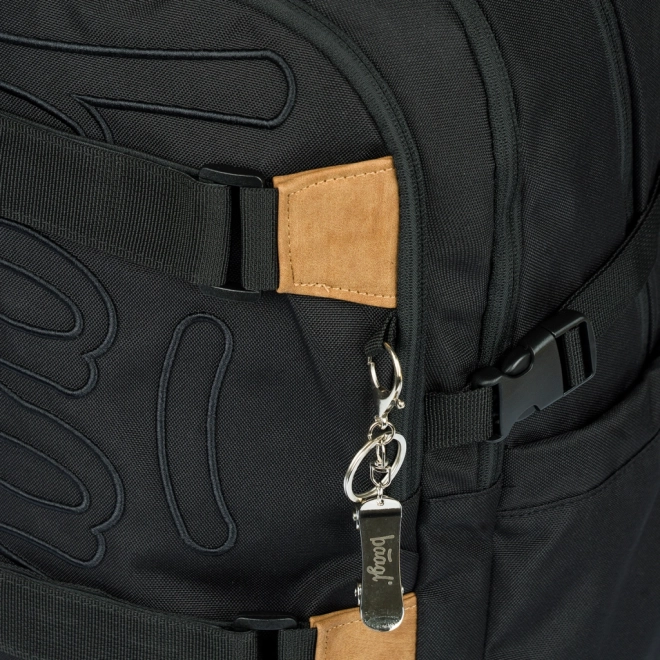- Praktické detaily – držáky na skateboard, boční kapsy na láhev, kovový přívěšek ve tvaru skatu.