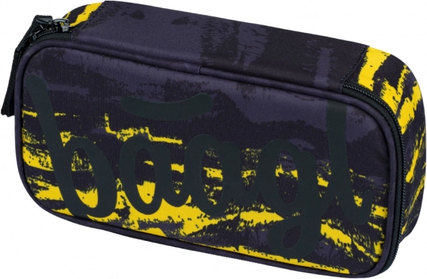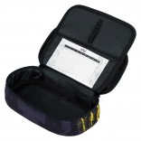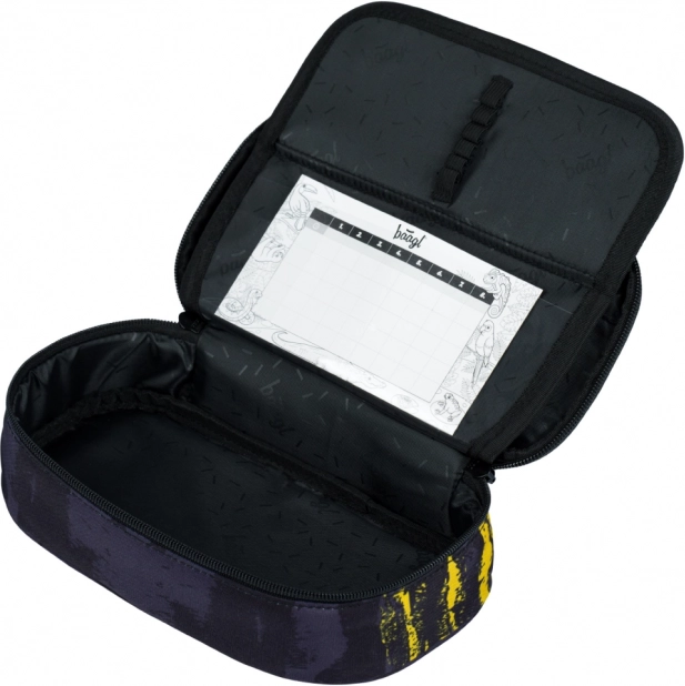 Pevný penál s výklopnou přepážkou a kapsou na rozvrh + sáček s pevnými tkanicemi pro obuv či sportovní potřeby.