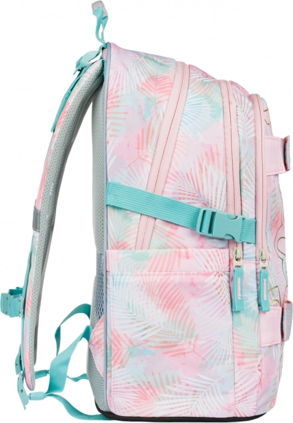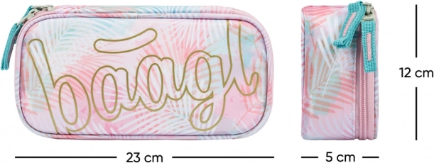 Objevte dokonale sladěný školní set BAAGL Skate Sunset, který kombinuje funkčnost, pohodlí a moderní pastelový design s motivem tropických listů. Batoh se třemi komorami pojme všechny školní potřeby včetně 15" notebooku, zatímco výztuž zad a polstrované popruhy zajistí celodenní komfort. Díky reflexním prvkům je váš školák lépe vidět i za šera.