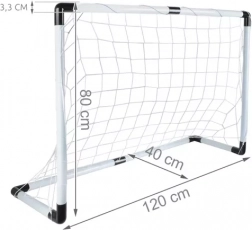 Lehká a stabilní dětská fotbalová branka o rozměrech 120 × 80 × 40 cm se síťí, míčem, pumpičkou a kolíky do země. Ideální pro zahradu i hřiště – podporuje pohyb, koordinaci a radost ze hry. Sada vyniká snadnou montáží, nízkou hmotností a odolnou nylonovou sítí pro bezpečné střelby. Kolíky pro ukotvení zajistí stabilitu na trávě, písku i hlíně a kompletní příslušenství umožní okamžitě začít hrát.