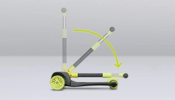 Připravená na jízdu - koloběžka nevyžaduje montáž, po vyjmutí z obalu ji dítě může ihned používat. Lze složit řídítka a použít je jako úchyt pro přenášení.