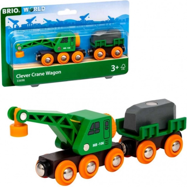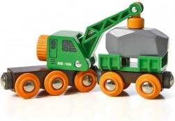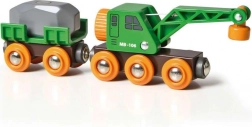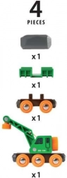Tento vagon s jeřábem uveze jakýkoli náklad bez ohledu na jeho hmotnost. Pomocí knoflíku můžete zvednout rameno jeřábu, zvedat náklad a otáčet jím. Náklad můžete přenést z vozu na zem. Všechny části sady se spojují pomocí magnetů.