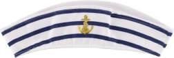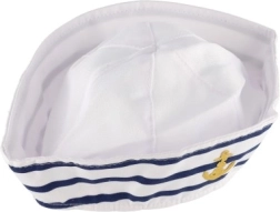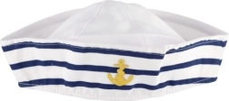 Bílé provedení s tmavě modrými pruhy a zlatou kotvou okamžitě navodí námořnickou atmosféru a pozvedne každý kostým.