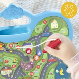 Stabilní deska s integrovaným úchytem a pevně připevněným stylusem je skvělá pro hraní doma i na cestách. Očíslovaná stanoviště podporují učení čísel a sekvencí, zatímco pestré ilustrace oblíbených míst z pohádek Peppa Pig udržují pozornost a motivují k dalšímu objevování.
