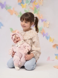 Objevte něžné miminko Llorens New Born s měkkým látkovým tělíčkem, které působí přirozeně a příjemně se chová. Po lehkém stlačení hrudníčku miminko zareaguje veselým smíchem a slovy „mama“, „papa“. Díky kloubově uchyceným ručkám a nožkám je panenka polohovací a umí i samostatně sedět.