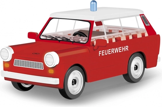 Trabant 601 Universal patří mezi nejznámější vozy z bývalé NDR a proslul mimo jiné netradiční karoserií z duroplastu, prostorným interiérem a nezaměnitelným vzhledem. Tato stavebnice COBI věrně zachycuje hasičské provedení s červenou barvou a modrým výstražným majáčkem v praktickém měřítku 1:35.