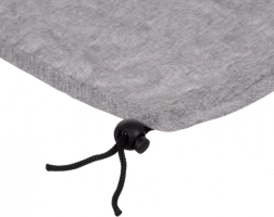 Instalace je rychlá a intuitivní – gumičku přetáhnete přes boudičku a šňůrkami se stoppery upevníte k rámu kočárku. V balení najdete kompaktní etui se zapínáním na suchý zip, která nezabere místo v košíku ani přebalovací tašce.