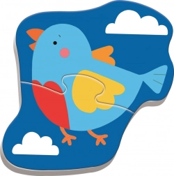 Každé z 4 zvířátek má pouze 2 velké dílky. Děti snadno pochopí princip a rychle zažijí radost z hotového obrázku.