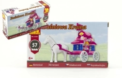 Vznešený bílý kůň táhne překrásný kočár, ve kterém se plní sny. Stavebnice Dromader je skvělou volbou pro děti, které milují pohádky a kreativní hraní. Díky 57 dílkům si děti snadno postaví vlastní kočár a mohou se vydat na báječné dobrodružství na zámek.
