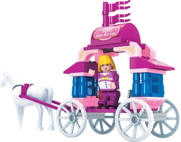 Stavebnice Dromader – pohádkový kočár s bílým koněm, 57 dílků