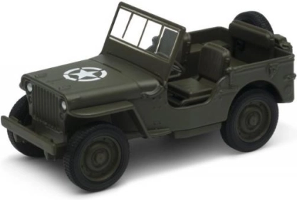Podívejte se na realistický model jezdeckého vozidla v olivově zelené barvě, doplněné o poznávací znak v podobě bílé hvězdy.