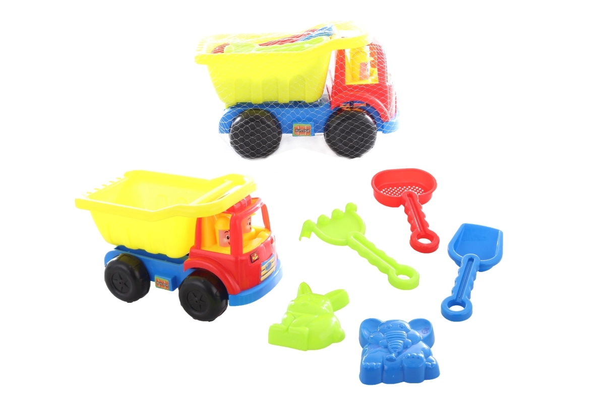 Zábavná sada na písek pro děti od 3 let obsahuje autíčko, lopatku, sítko, hrabičky a 25 báboviček. Prakticky baleno v síťce, ideální na hřiště i dovolenou.