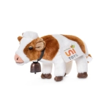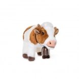 Tato plyšová kráva s hnědo-bílými skvrnami a roztomilým zvonečkem na obojku je skvělým společníkem pro děti od 3 let. Díky jemnému plyši a pečlivému zpracování je perfektní pro mazlení, hraní i jako dekorace do dětského pokoje.