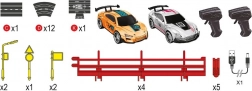 V balení najdete vše potřebné pro okamžité závodění: 2 závodní speciály, 2 ruční ovladače a praktické příslušenství. Díky kompaktnímu rozměru 90 × 65 cm se autodráha vejde na stůl i do dětského pokoje.