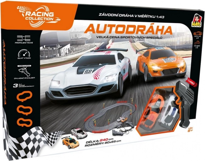 - Délka trati 240 cm – ideální pro svižné závody na menším prostoru.
