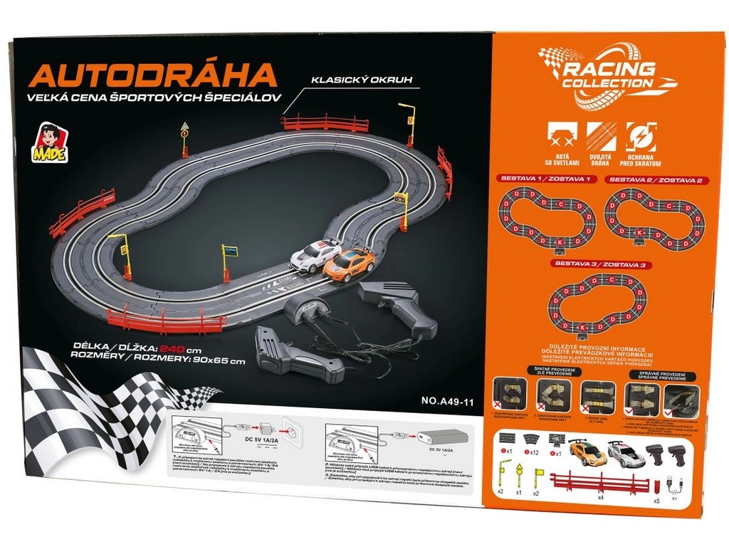 Užijte si napínivé závody s autodráhou o délce 240 cm a rozměru 90 × 65 cm. Set obsahuje 2 závodní auta, 2 ovladače a USB napájení pro snadné připojení k adaptéru či powerbance. Skvělá volba pro malé i velké závodníky od 8 let.