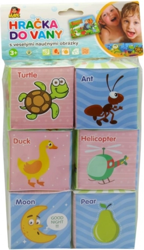 Pěnové kostky do vody 7 × 7 × 7 cm pro děti od 3 let. Plavou, jsou lehké a měkké, ideální pro koupání i bazén. Praktické balení v sáčku.