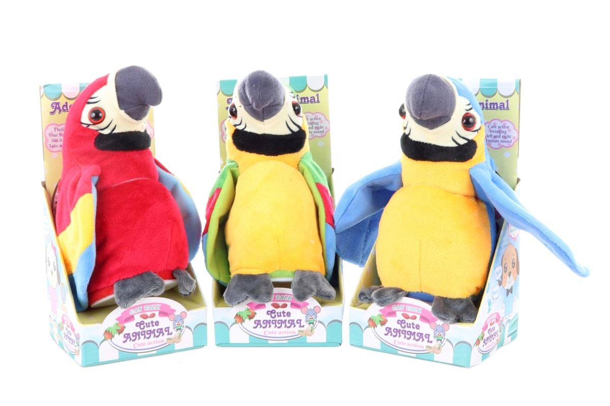 Roztomilý mluvící papoušek z plyše potěší děti od 3 let. Po zapnutí opakuje slova a zároveň mává křídly, čímž vytváří zábavnou interaktivní hračku pro každodenní hraní. Napájení zajišťují 3× AAA baterie (nejsou součástí).