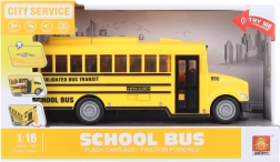 Plastový školní autobus na baterie o rozměrech 27 x 11 x 9 cm je ideální hračka pro děti od 3 let. Při stisknutí tlačítka vydává zvuky a svítí, což zajišťuje zábavu i bezpečnost.