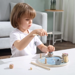 Zábavná dřevěná magnetická hra rybolov POLARB od VIGA přináší dětem od 18 měsíců barevné chytání rybiček s čísly a tečkami. Set obsahuje kruhovou podložku, 2 pruty, kostku a 12 rybek. Hra podporuje koordinaci ruka–oko, jemnou motoriku, učení čísel a společenskou interakci při soutěžení i kooperaci.
