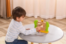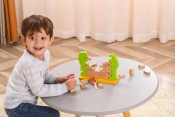 Děti procvičují přesnost pohybů a koordinaci při stavění a opatrném vyndávání dřevěných „cihel“. Hra přirozeně podporuje soustředění a klidnou práci rukou.