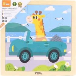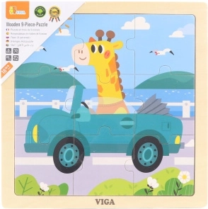 Toto kvalitní dřevěné puzzle s roztomilou žirafou v autě je navrženo pro malé dětské ruce. Díky 9 velkým a snadno uchopitelným dílkům děti trénují koordinaci oko–ruka a učí se skládat jednoduchý obrázek v pevném dřevěném rámečku.