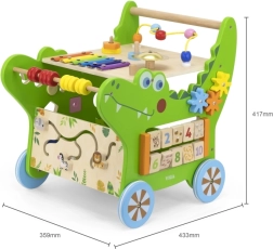 Objevte multifunkční dřevěné chodítko ve tvaru krokodýla od značky VIGA, které nabízí až 12 aktivit pro zábavu i učení. Podporuje první krůčky, rozvíjí jemnou i hrubou motoriku, koordinaci oko–ruka a logické myšlení. Najdete na něm ksylofon, počítadlo, třídicí box tvarů, ozubená kola, labyrint a další prvky, které děti motivují k pohybu i objevování.