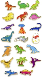 Magnety skvěle drží na lednici i magnetické tabuli. Děti si mohou skládat příběhy a poznávat dinosaury zábavnou formou.