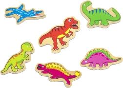 Tato kvalitní sada obsahuje 20 barevných dřevěných magnetů s motivy dinosaurů, vejce a vulkánu. Díky pevnému dřevu a hladkým hranám jsou magnety příjemné do ruky a bezpečné pro malé děti. Perfektní pro první objevování světa prehistorických zvířat a rozvoj slovní zásoby.
