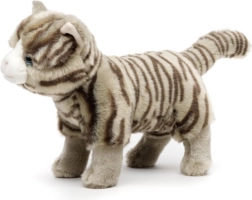 Měkký plyš s jemným proužkováním a modrými očičkami působí věrohodně a láká k mazlení.