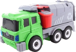 Detailní zpracování s pohyblivými částmi a recyklačními motivy podporuje tematickou hru o třídění odpadu.