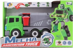 Jednoduchý transformační mechanismus promění popelářské auto v akčního robota a zpět – ideální pro dynamickou hru.