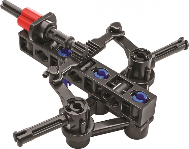 Technic díly s osami, ozubenými koly a spojkami ukazují přenos pohybu a principy mechaniky v praxi.